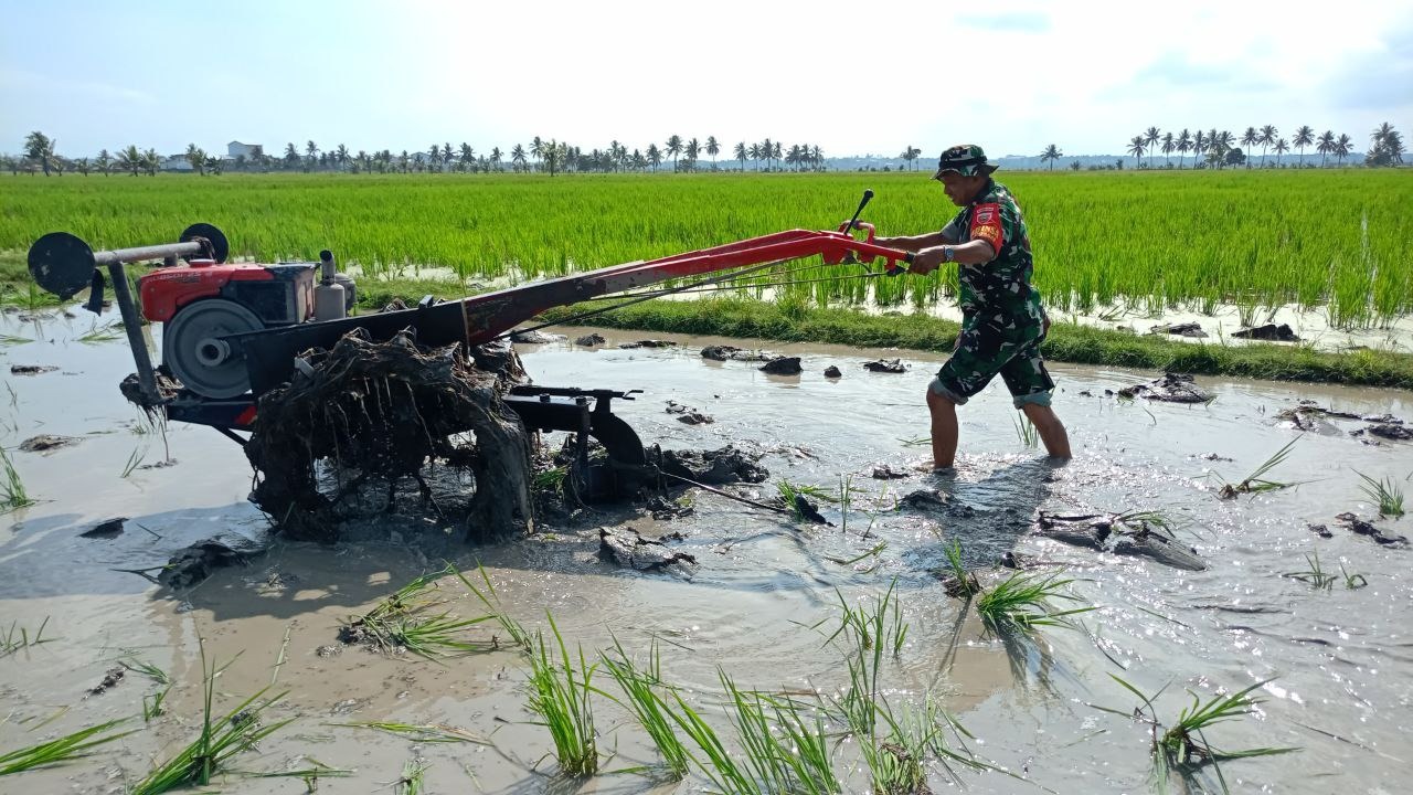 Serma Ramli turun langsung ke sawah bersama para petani untuk memastikan proses pengolahan lahan berjalan optimal, yang merupakan tahap krusial sebelum musim tanam. Kehadiran Babinsa di tengah-tengah petani ini tidak hanya memberikan bantuan tenaga, tetapi juga menjadi motivasi bagi para anggota kelompok tani.
