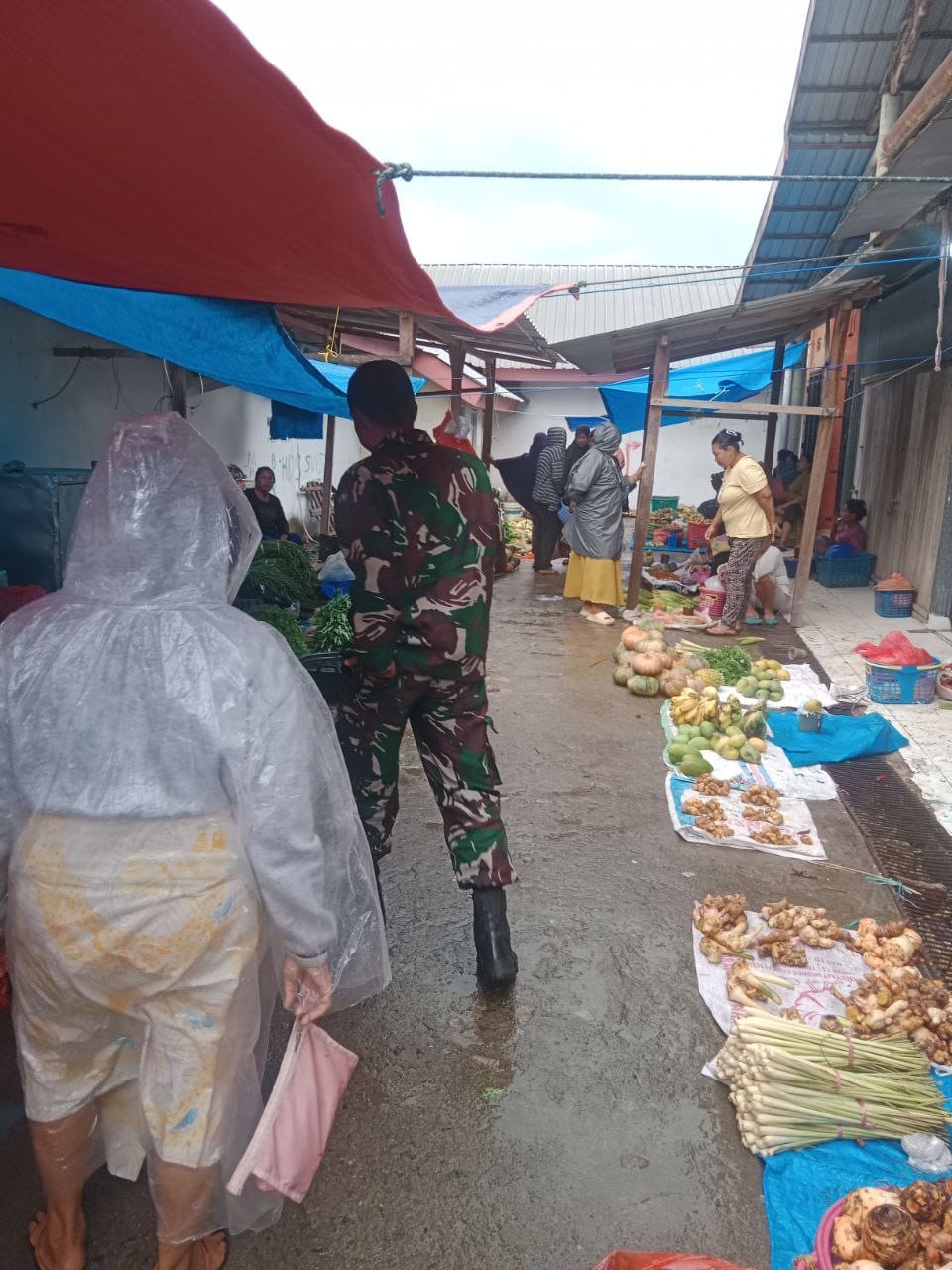 Dalam pemantauannya, Serda Lannang melakukan pengecekan langsung ke berbagai kios pedagang, menyampaikan pentingnya menjaga stabilitas harga, serta mendengarkan informasi terkait kondisi pasokan dari para pelaku usaha. Hasil pantauan menunjukkan bahwa secara umum ketersediaan bahan pokok di pasar tersebut cukup melimpah, sementara harga sebagian besar komoditas berada pada kisaran normal.