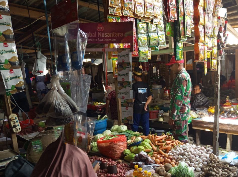 Dalam kunjungannya, Sertu Bustan berdialog langsung dengan para pedagang dan pembeli untuk mengecek secara langsung harga-harga komoditas utama, seperti beras, minyak goreng, gula, telur, dan cabai.
