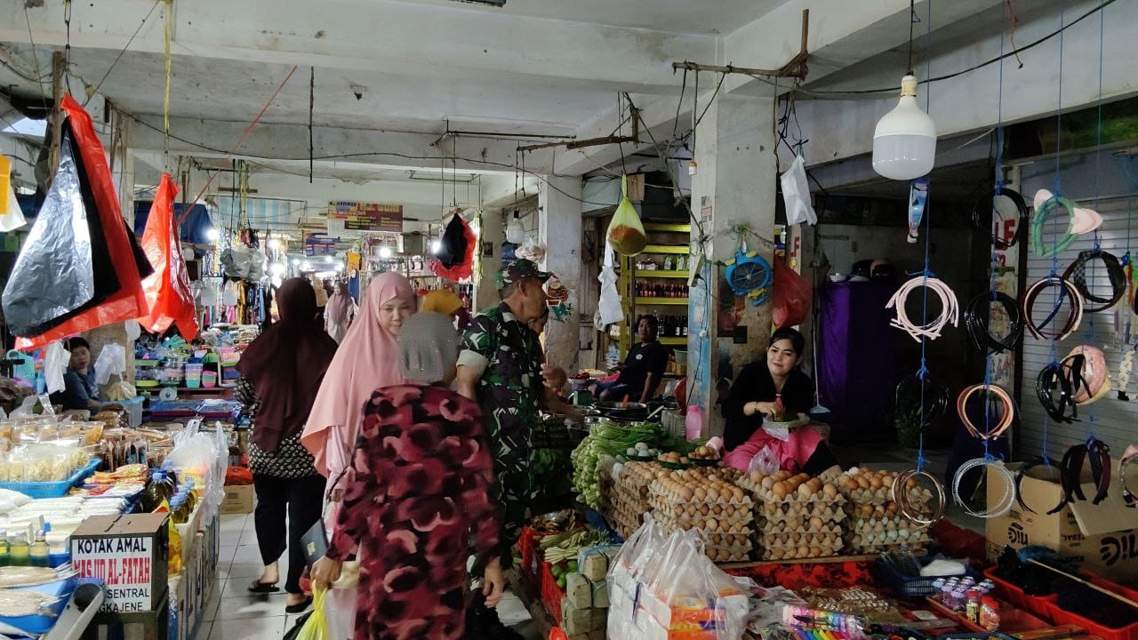 SIDRAP – Dalam upaya memastikan stabilitas harga dan ketersediaan kebutuhan pokok masyarakat di penghujung tahun, Babinsa Koramil 03/Maritengngae, Serma Nursalam, melaksanakan pemantauan langsung di Pasar Sentral Pangkajene, Kecamatan Maritengngae, Kabupaten Sidrap, Senin (29/12/2025).