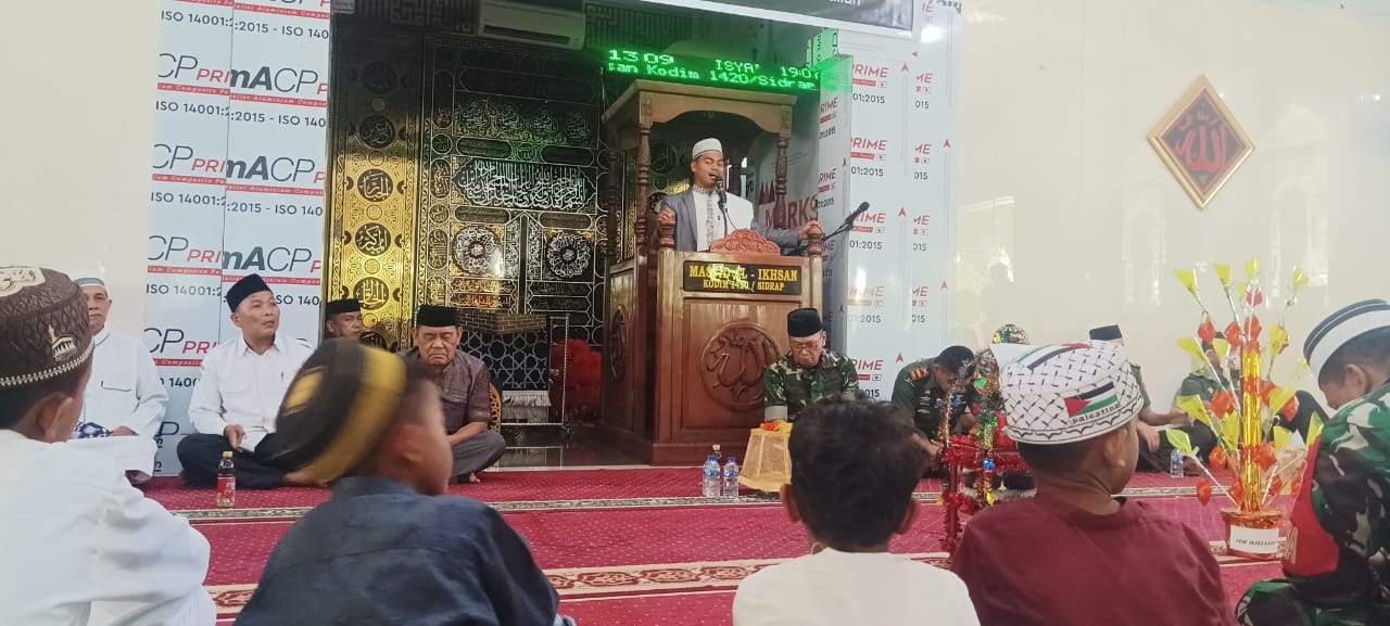 SIDRAP — Komando Distrik Militer 1420/Sidrap menggelar peringatan Maulid Nabi Muhammad SAW 1447 H yang khidmat dan penuh makna. Bertempat di Masjid Al-Ikhsan Kodim 1420/Sidrap pada Selasa, 23 September 2025, kegiatan ini mengusung tema “Membangun Karakter Personel TNI Prima Melalui Sunnah Rasulullah.”