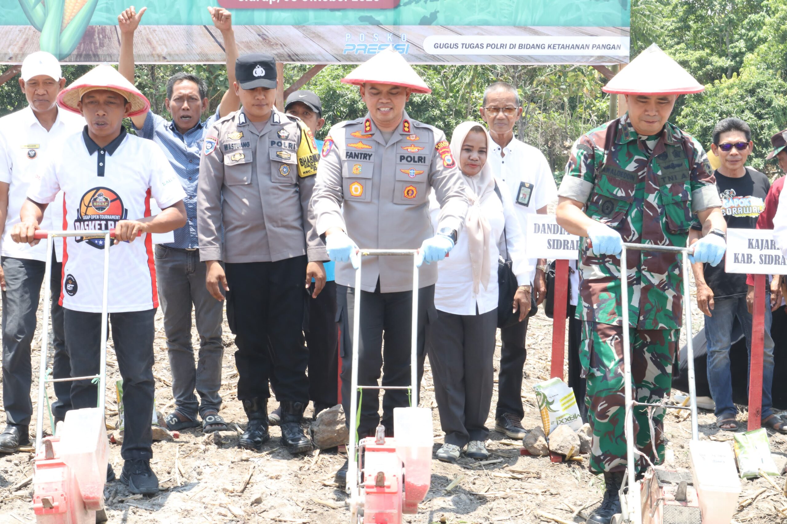 Sebagai wujud dukungan nyata terhadap program pemerintah dalam mewujudkan Swasembada Pangan Tahun 2025, Polres Sidrap bersama unsur Forkopimda melaksanakan penanaman jagung serentak kuartal IV di lahan produktif Desa Corawali Kecamatan Panca Lautang Kabupaten Sidrap, Rabu (8/10/25) siang